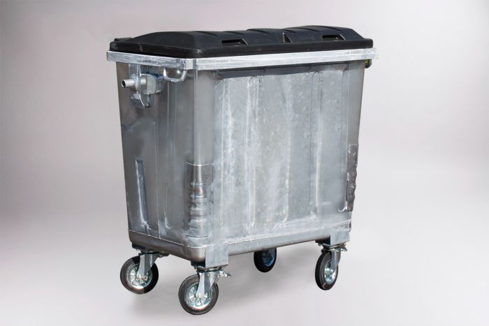 Contentor de lixo em aço com 4 rodas 770L, tampa parede dupla preta
