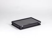 Caixa empilhável 600x400x90 mm, 14L com tampa, preto, ESD