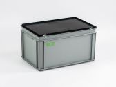 Caixa com tampa empilhável 600x400x340 mm, 60L, cinza