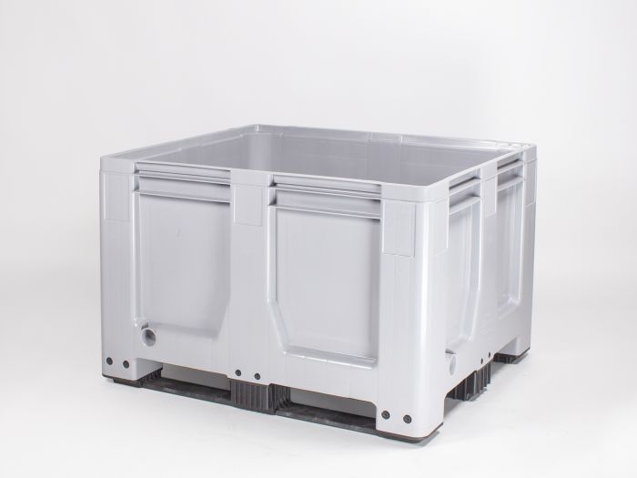 Caixa palete 610L, 1200x1000x760 mm, fechada, 3 patins, cinza