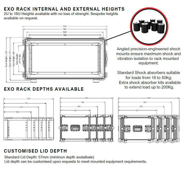 As malas EXO Rack 20U são uma escolha profissional e acessível: com um pequeno investimento, protegem seus valiosos equipamentos "on-the-road"! Principais características: